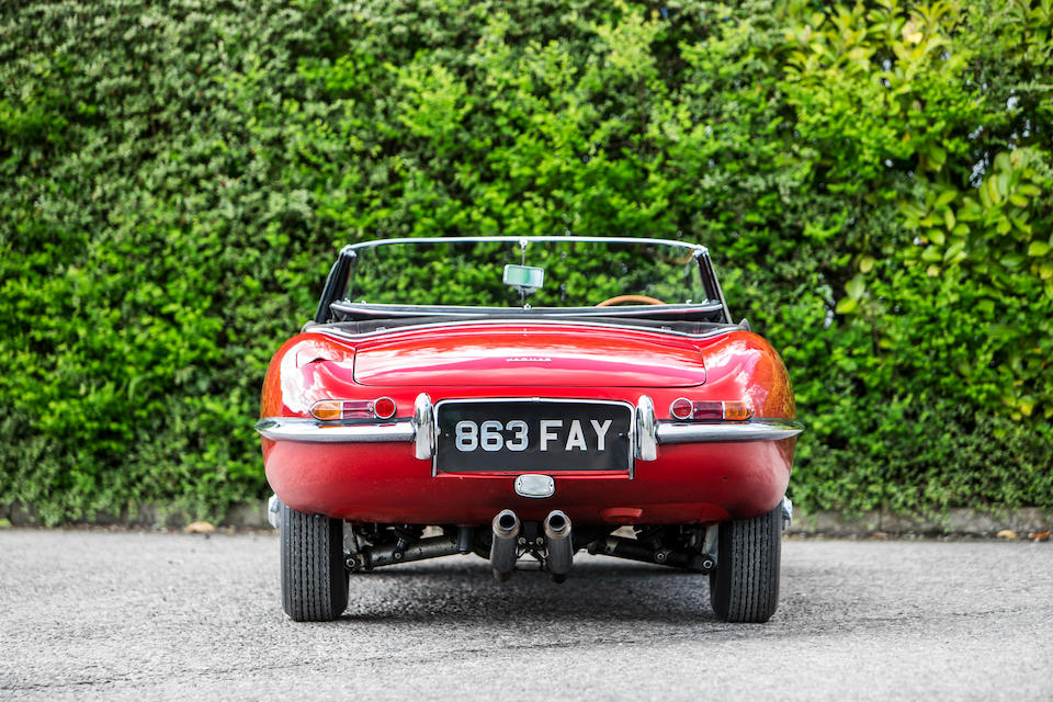 Dating from the first few months of production this example is one of the earliest surviving left hand drive jaguar e type roadsters the chassis number sequence commenced at 875001 and has features typical of these early production models including the flat floor welded bonnet louvres and external bonnet locks.